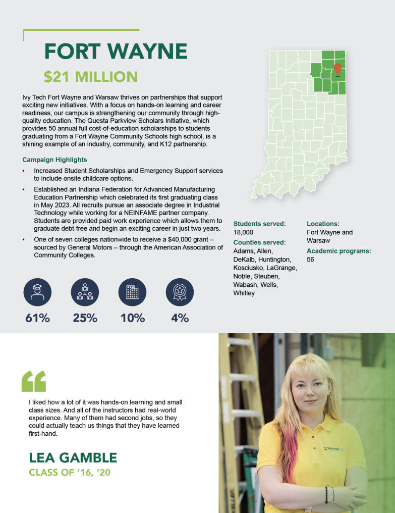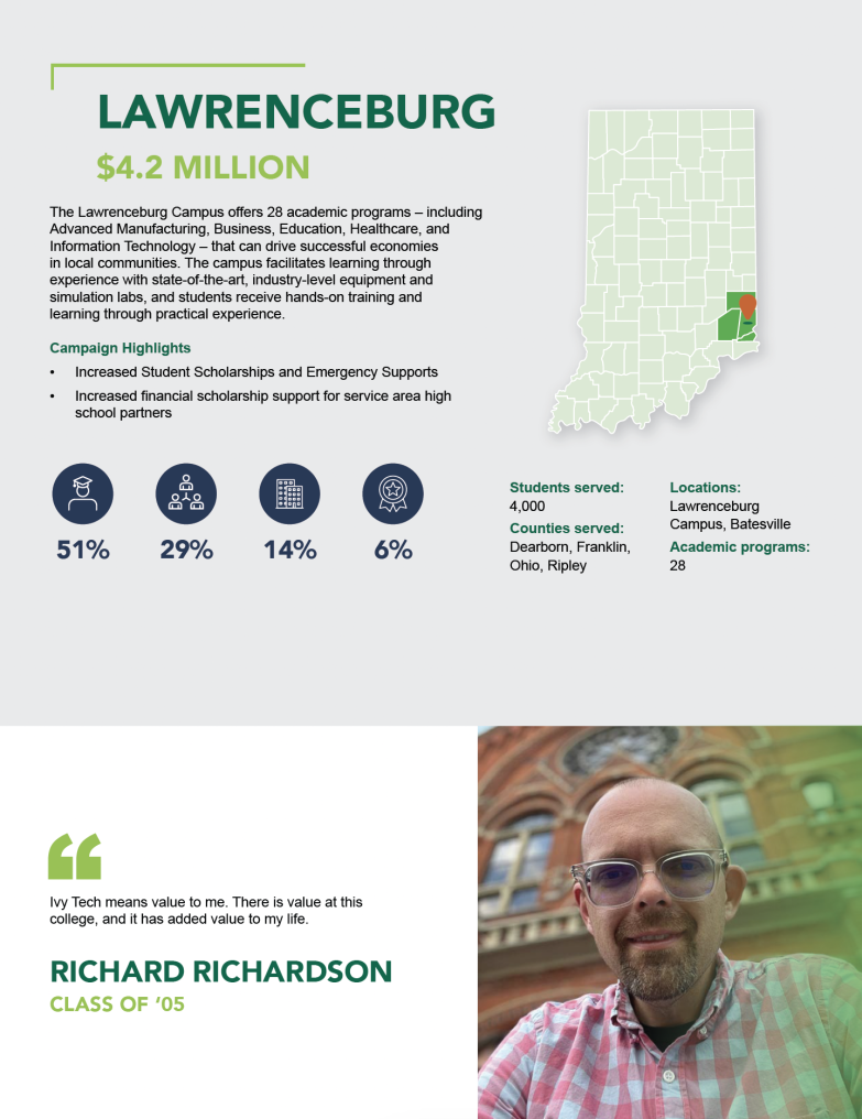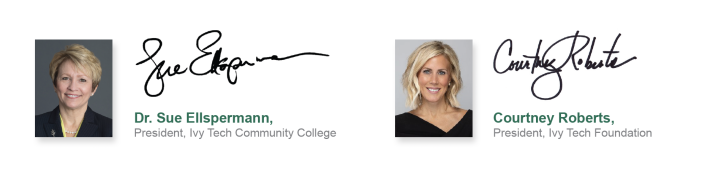 Your generosity and commitment to Ivy Tech inspires our college community, and the extent of our gratitude is difficult to